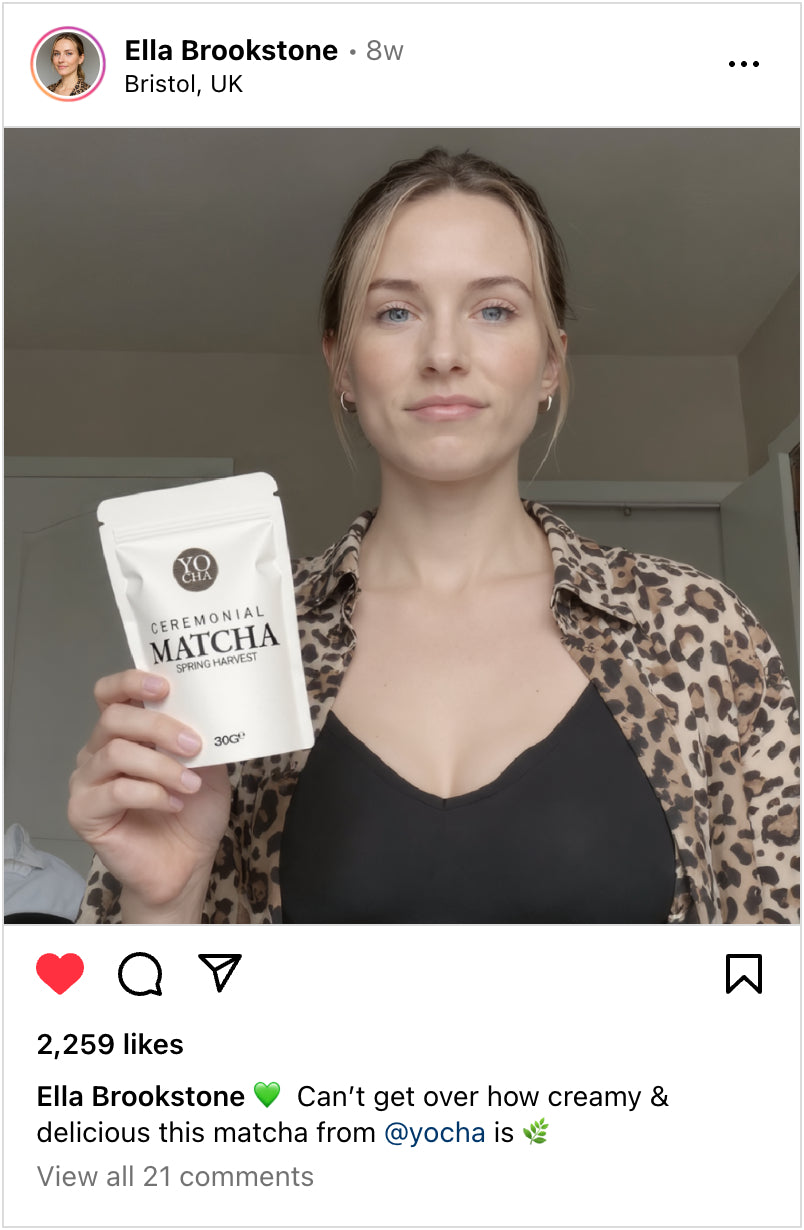 Ceremoniële matcha heeft een natuurlijke, zachte en delicate smaak, met subtiele zoete tonen en een lichte umami-smaak. Het is niet bitter zoals matcha van mindere kwaliteit, en daarom wordt het vaak beschouwd als de meest aangename manier om matcha in zijn puurste vorm te ervaren.